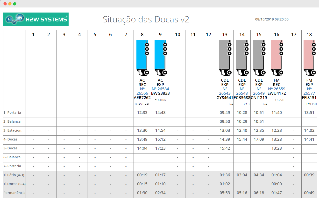 This software allows the control of the trucks and transport vehicles during the time they are inside the company's yard for shipment or pick-up of cargo. The control includes several steps such as freight scheduling, weighing, loading, and unloading.